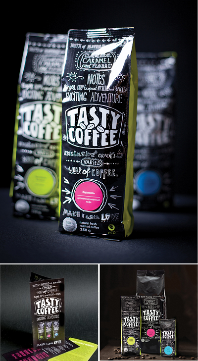 Дизайн упаковки. Благодаря интересной упаковке наш кофе отлично продается в супермаркетах и сетях премиум-класса.